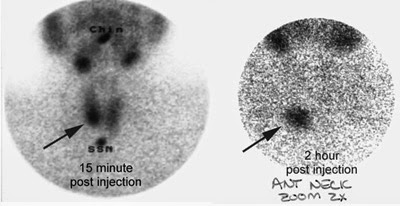 Το σπινθηρογράφημα παραθυρεοειδών με Sestamibi. Στο ειδικό αυτό Σπινθηρογράφημα με sestamibi ο ασθενής λαμβάνει μια πολύ μικρή ποσότητα μιας ραδιενεργούς ουσίας, η οποία απορροφάται μόνο από τον υπερλειτουργούντα παραθυρεοειδή αδένα και μας οδηγεί στον εντοπισμό του.